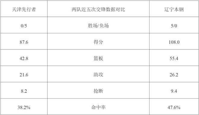 两队近五次交锋数据对比: